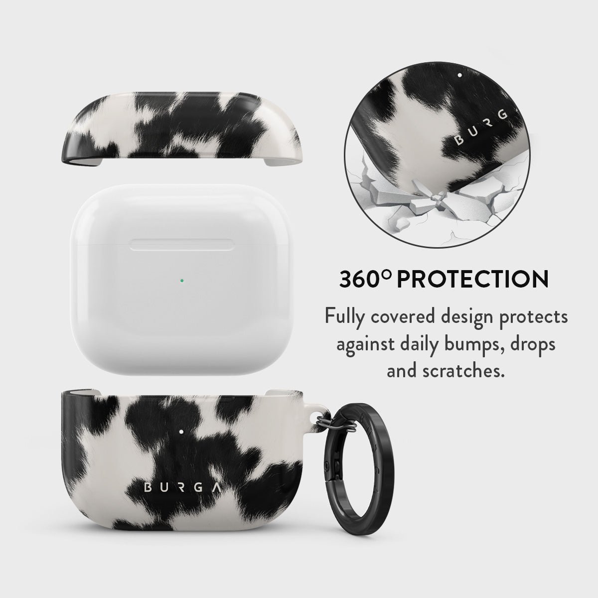 Your Airpods deserves to look cute and stay protected at all times. and our Achromatic Apple Airpods 3 case cover will help you keep it safe and sound. The cow print in black and white is both daring and classic. making it the perfect addition to your accessory collection.