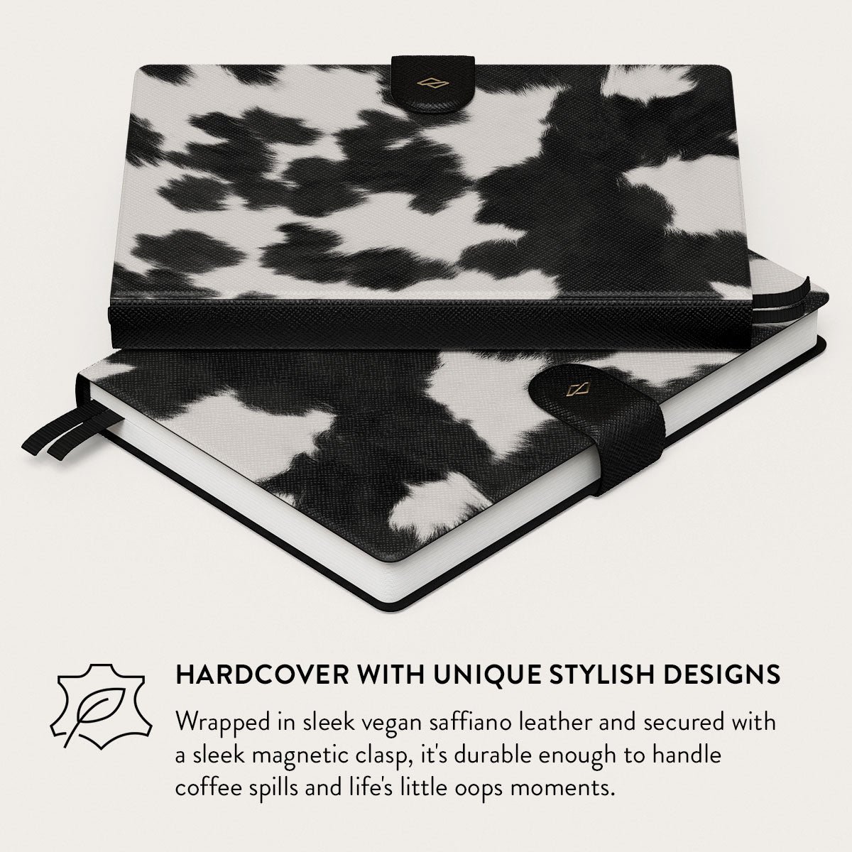 Wrapped in sleek vegan saffiano leather and secured with a sleek magnetic clasp. it’s durable enough to handle coffee spills and life’s little oops moments.