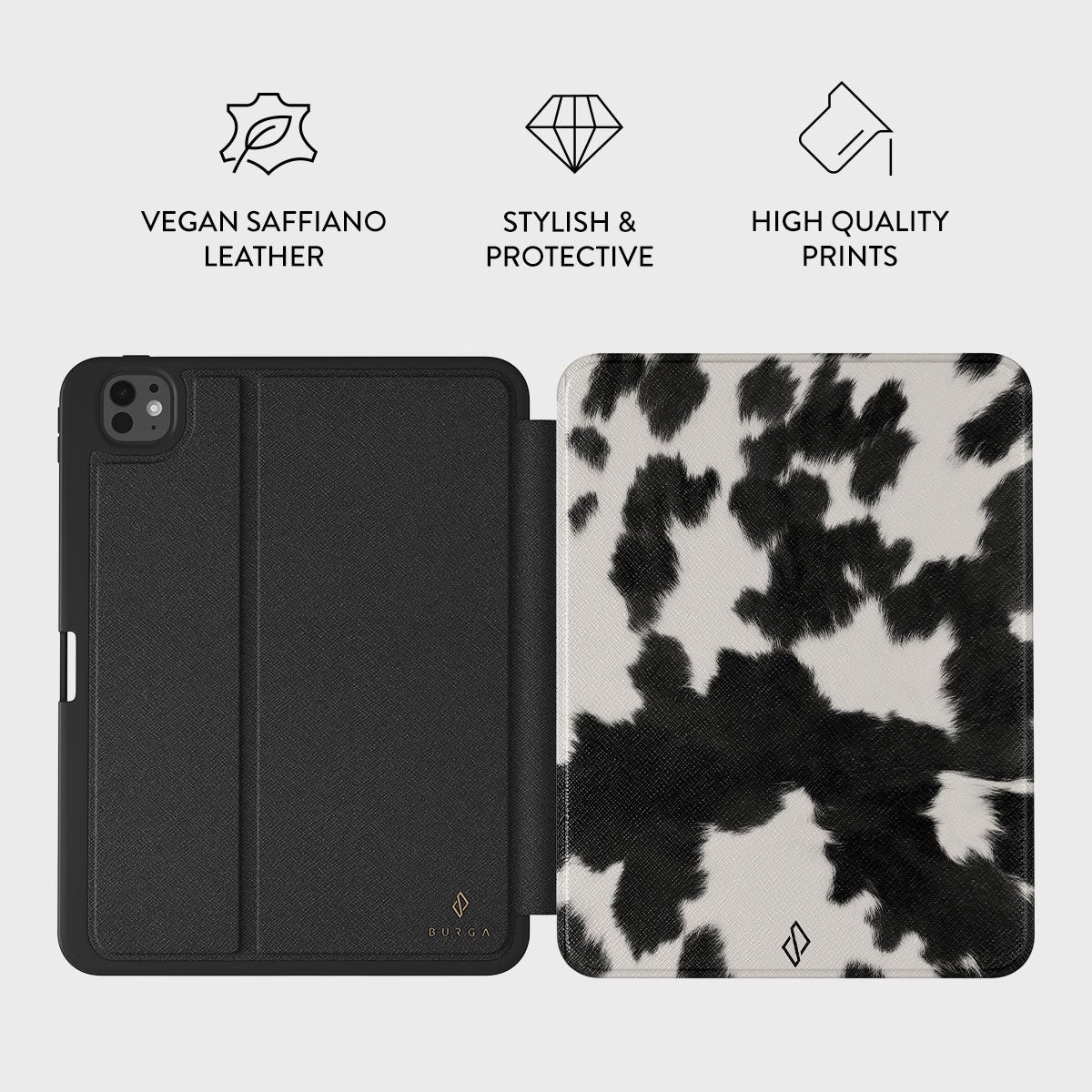 * The case is not textured-it is a printed pattern *Your iPad deserves to look cute and stay protected at all times. and our Achromatic iPad Pro 11 (7th Gen) folio case will help you keep it safe and sound. The cow print in black and white is both daring and classic. making it the perfect addition to your accessory collection.